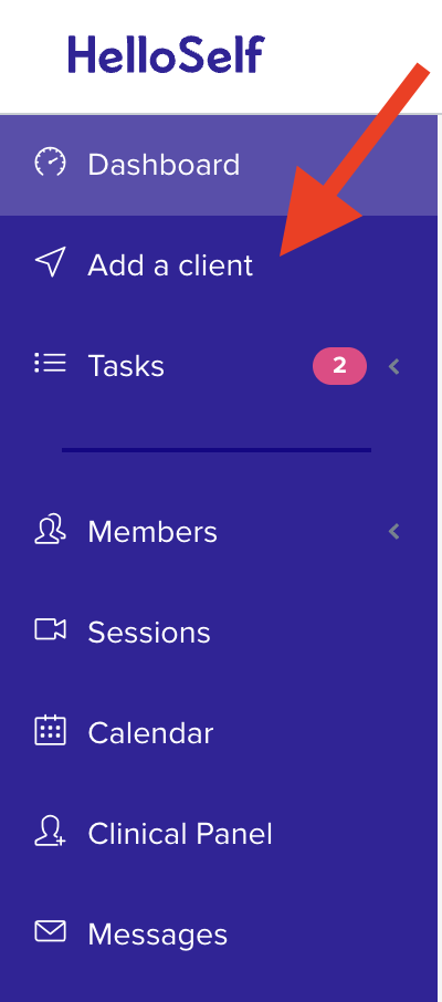 log into the HelloSelf platform and select the option “add a client’ on the top right of the blue tool bar